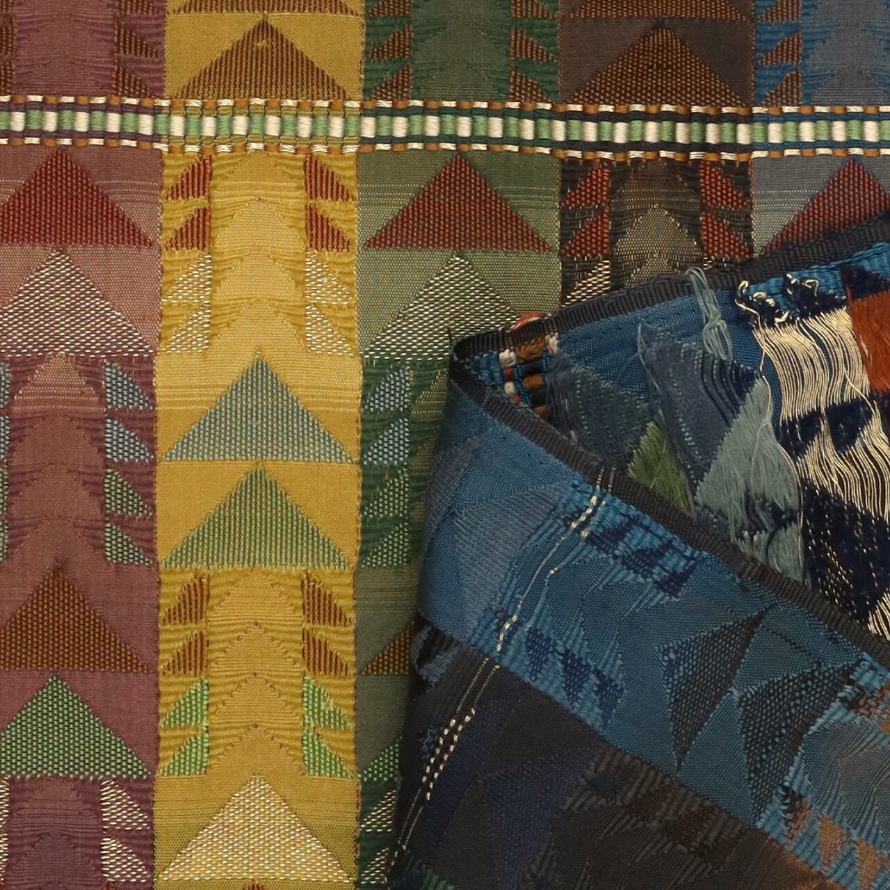 金襴・緞子・錦等の絹織物をはじめ、更紗・唐桟・唐木綿、印金・天鵞絨・小袖裂その他多種多様な裂を用途に応じて使い分けます。